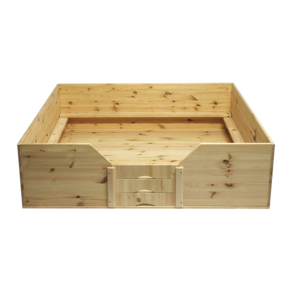 Diese Wurfkiste hat zusätzlich einen umlaufenden Welpenschutz damit die Welpen während des Schlafens der Mutter nicht erdrückt oder erstickt werden.