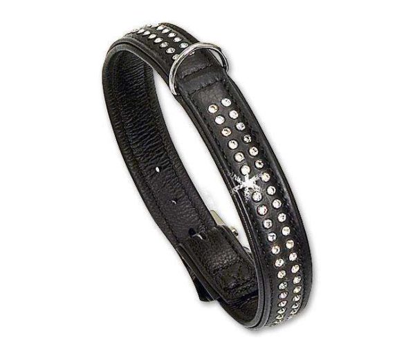 Das Halsband ist aus weichem Feinleder in bester Verarbeitungsqualität gefertigt. Der Strassbesatz ist sicher zwischen den Lagen des Leders eingenäht. Die Steine bestechen durch ihre glasreine Qualität und das feurige Funkeln im Wechselspiel des Lichtes.