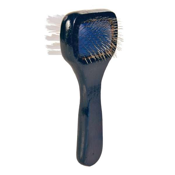 Die Bürste besteht aus Holz. mit extra weichen Draht- und Nylonborsten für eine besonders schonende Fellpflege.
