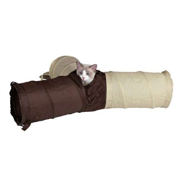 Dieser Spieltunnel für Katzen und auch für Welpen besteht aus strapazierfähigem Nylonmaterial und ist durch integrierte Spiralfedern formstabil. Er eignet sich für drinnen und draußen und ist mit vier Eingängen ausgestattet, zum Verstecken und auf die Lauer legen.